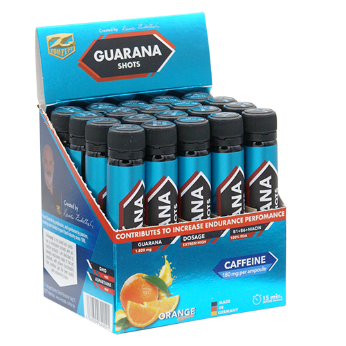 Guarana 1.800 Shot'i jaoks oleme kasutanud parimat kvaliteeti guaranaekstrakti, mis tähendab kõrgemat kofeiinisisaldust ja paremat maitset. Vedelal kujul võimaldab see kiiremat imendumist kui tablett või kapsel, pikemaajalise toimega. Valem on rikastatud vitamiinidega B1, B3 ja B6 täiendava ergutava toime saavutamiseks.